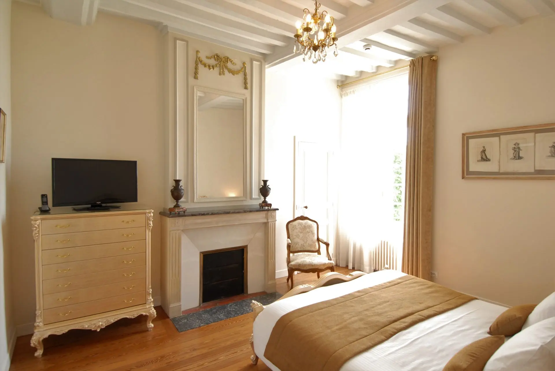 Profitez du charme classique modernisé de touches contemporaines de la bâtisse 18e siècle avec cette chambre (1er étage par escalier, pas d’ascenseur).