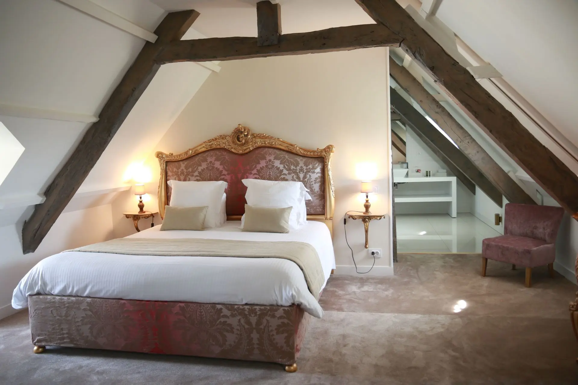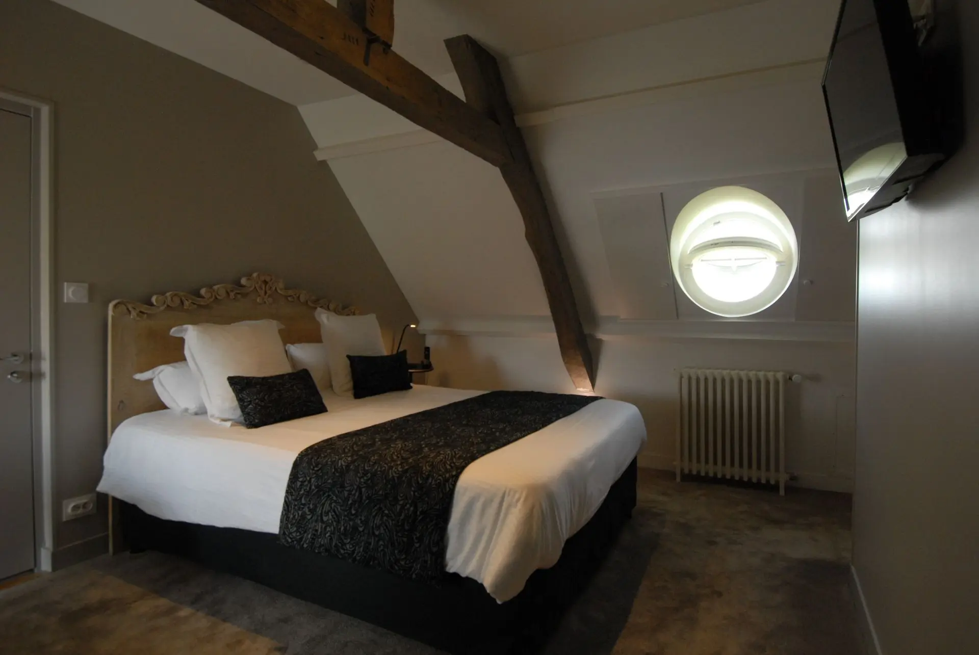 Cette chambre offre un cadre unique et plein de charme, idéal pour un séjour intime et confortable.