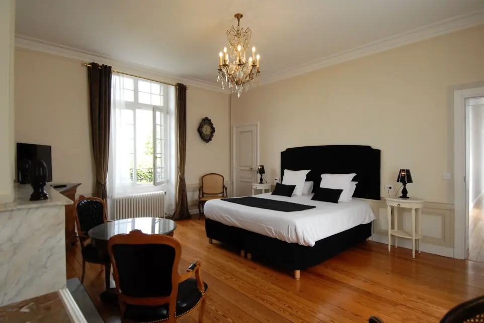 Profitez du charme classique modernisé de touches contemporaines de la bâtisse 18e siècle avec cette chambre double supérieure (1er étage par escalier, pas d’ascenseur).